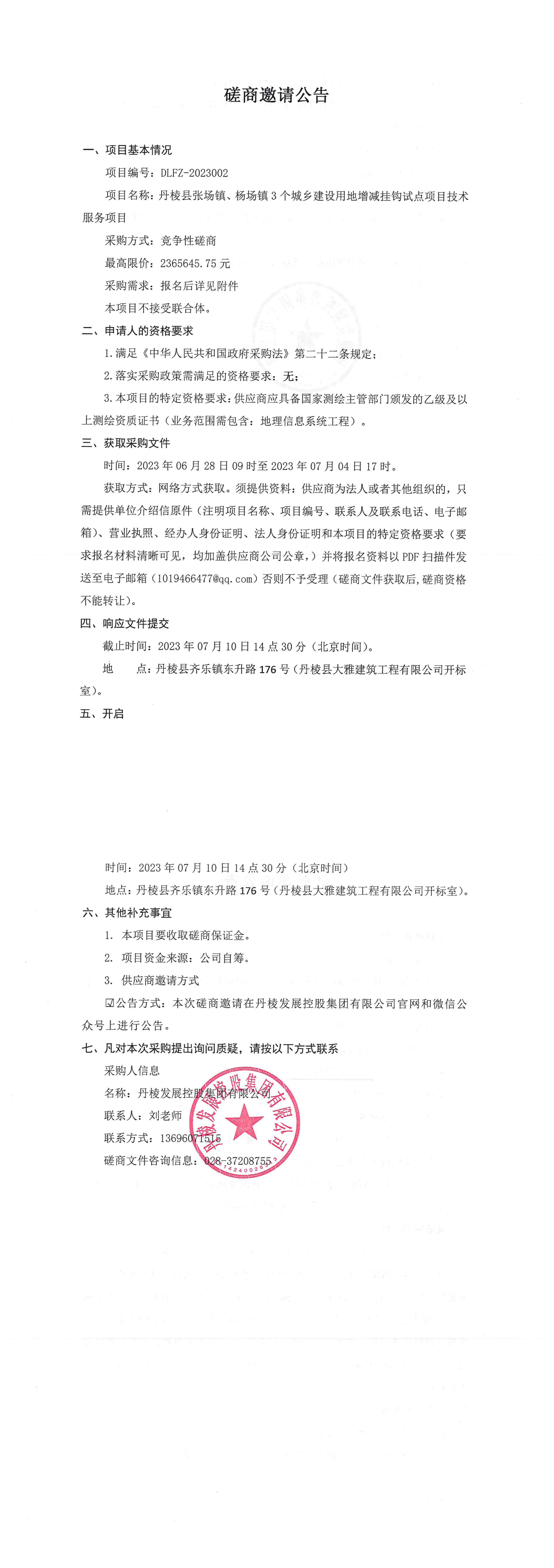 項(xiàng)目名稱(chēng):丹棱縣張場(chǎng)鎮(zhèn)、楊場(chǎng)鎮(zhèn)3個(gè)城鄉(xiāng)建設(shè)用地增減掛鉤試點(diǎn)項(xiàng)目技術(shù)服務(wù)項(xiàng)目磋商邀請(qǐng)公告