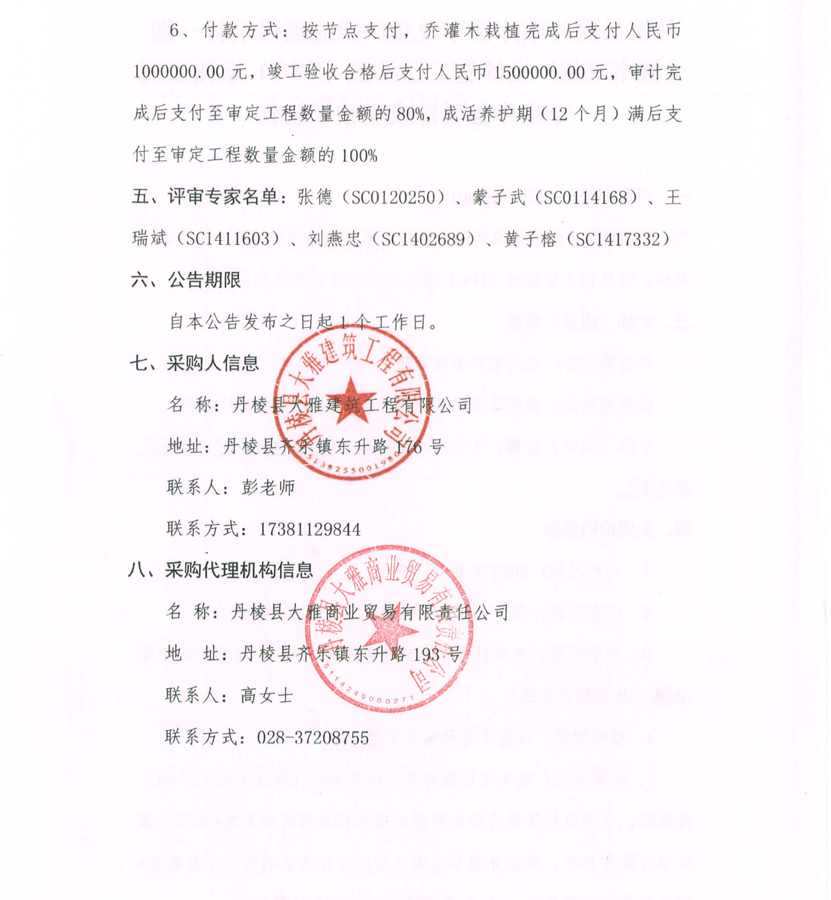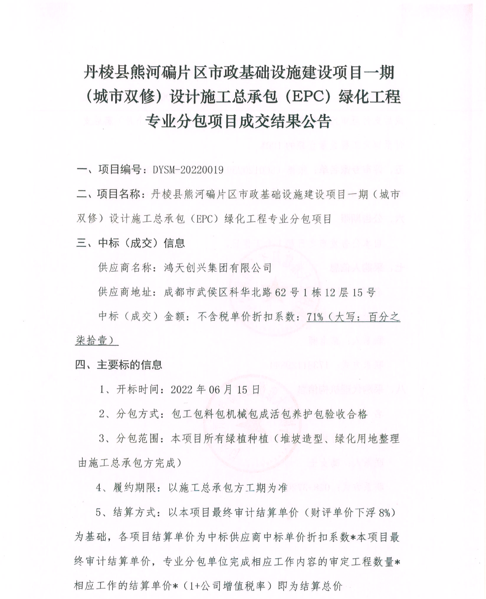 丹棱縣熊河碥片區市政基礎設施建設項目一期(城市雙修)設計施工總承包(EPC)綠化工程 專業分包項目成交結果公告