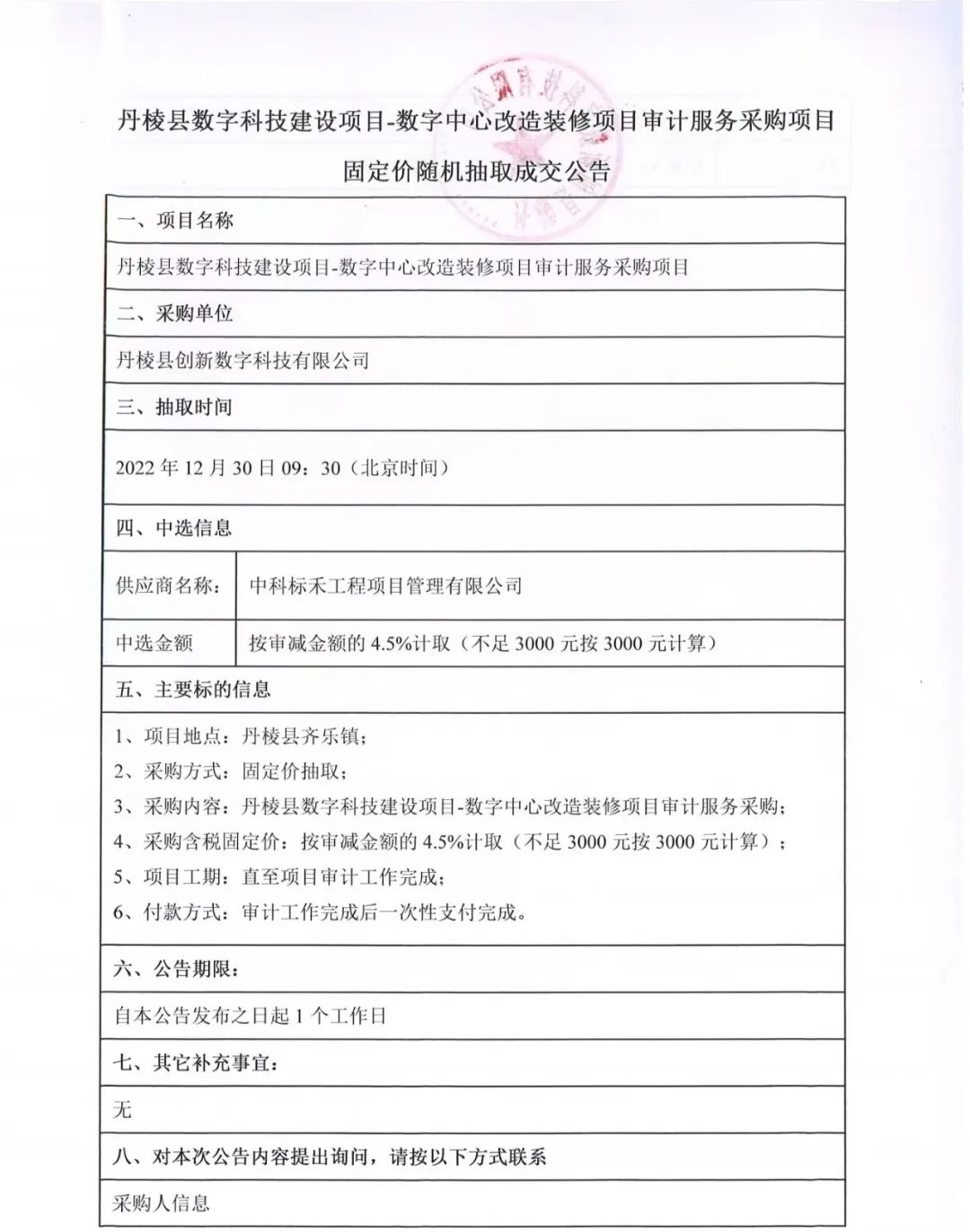 丹棱縣數字科技建設項目-數字中心改造裝修項目審計服務采購項目固定價隨機抽取成交公告