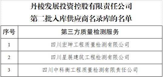附件:丹棱發展投資控股有限責任公司第二批入庫供應商名單