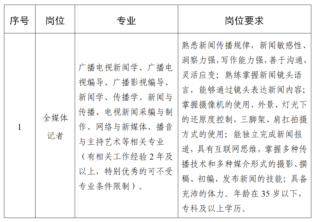 因業務發展需要,丹棱縣融媒體中心委托丹棱縣大雅家園勞務服務有限公司面向社會公開招聘全媒體記者1名,具體內容如下: