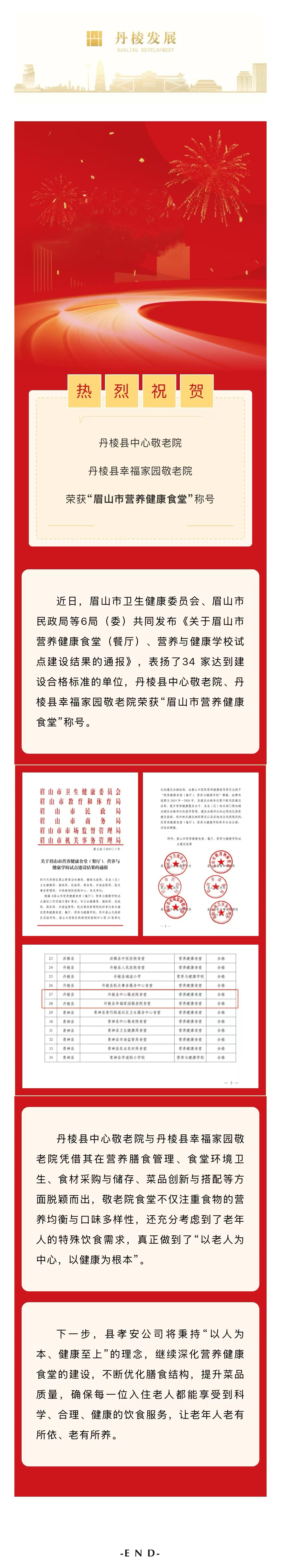 【縣孝安公司】喜報!丹棱縣中心敬老院、丹棱縣幸福家園敬老院榮獲“眉山市營養健康食堂”稱號