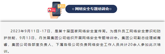 【網絡安全宣傳周】 丹發展集團公司開展網絡安全專題培訓會