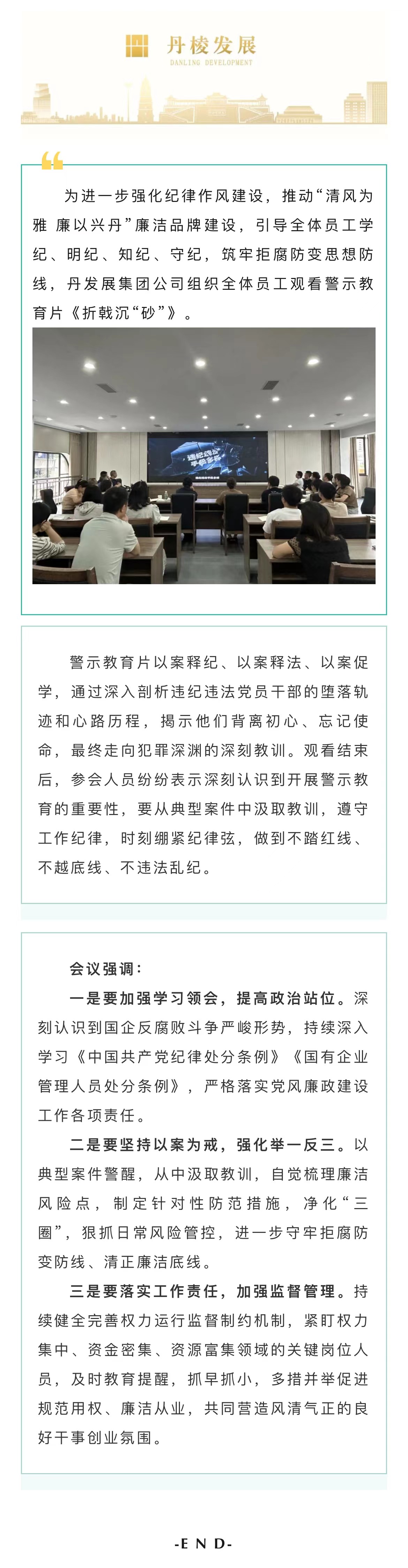 以案為鑒守初心 警鐘長鳴知敬畏丨丹發展集團公司組織觀看警示教育片《折戟沉“砂”》