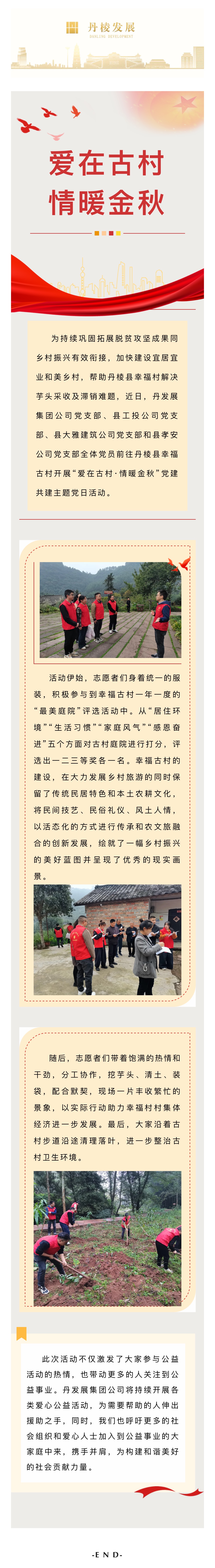 結對共建,共育共進|丹發展集團公司黨支部開展“愛在古村·情暖金秋 ”黨建共建主題黨日活動